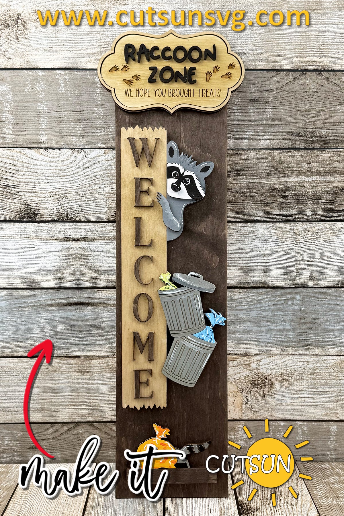 Raccoon Zone Porch Sign SVG – Interchangeable Vertical Leaner File