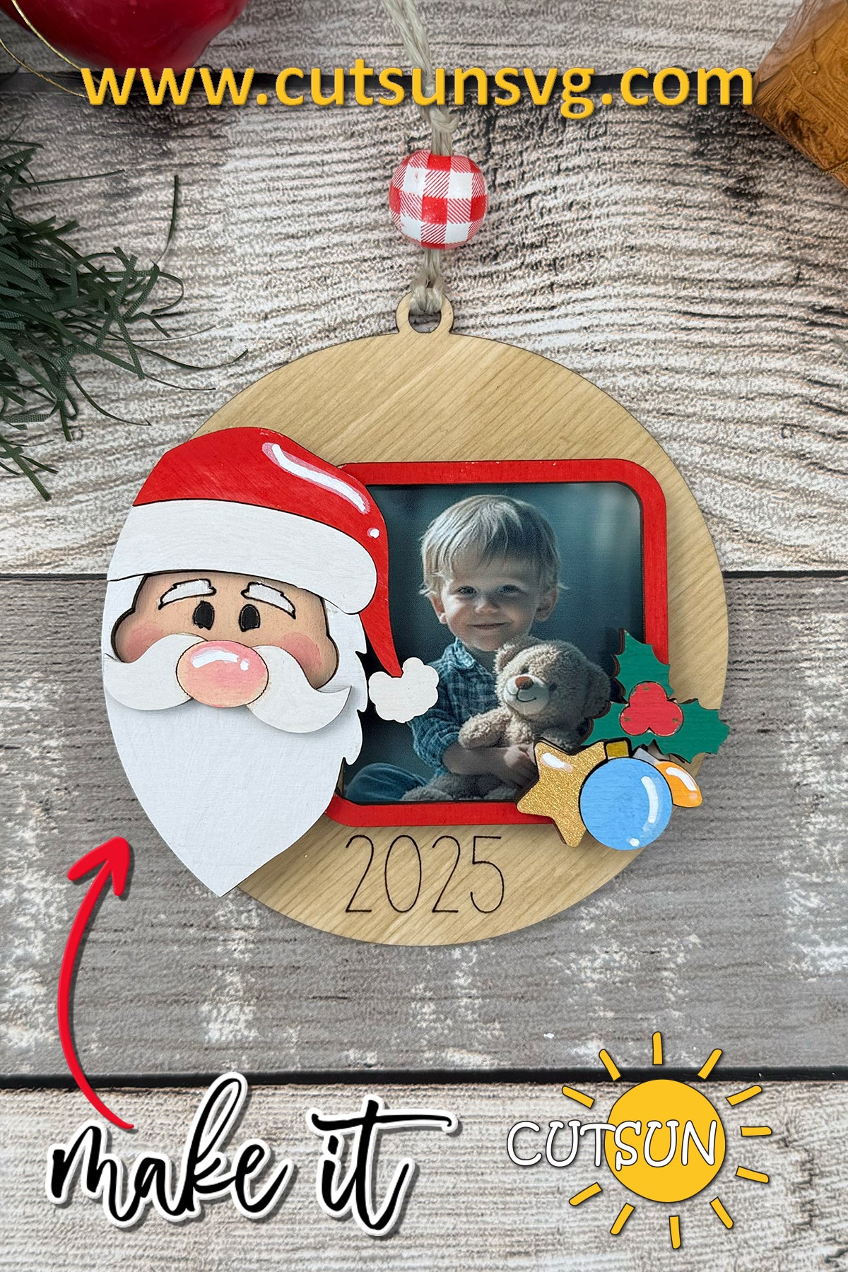 Santa Christmas Photo Ornament – Keepsake Ornament, Laser Cut File