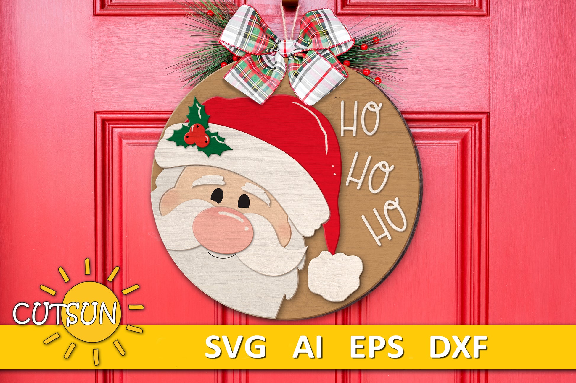 Santa Ho Ho Ho Door Hanger SVG | Christmas Door Hanger SVG | Santa Welcome Sign | Holiday Front Door Decor | Laser Cut File