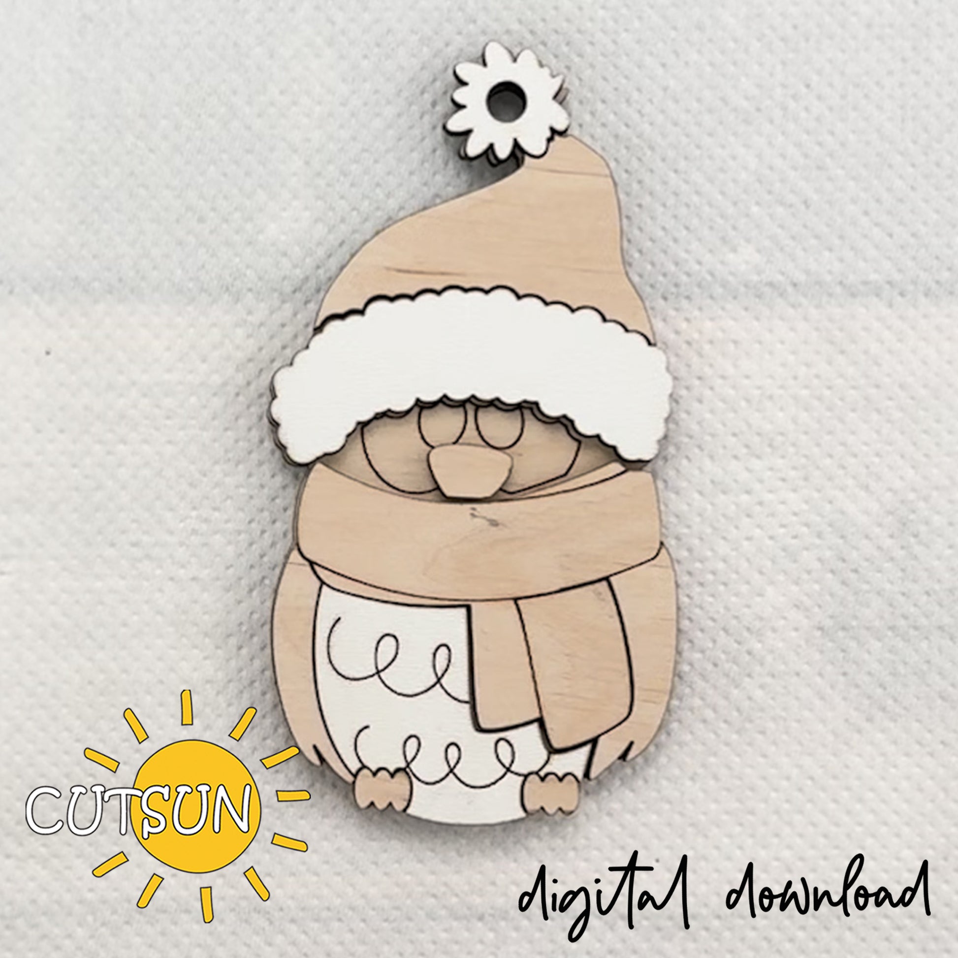 The layered design can be cut from wood, MDF, or acrylic and offers endless creative possibilities. Keep it natural or paint it in festive colors for a personalized look. The design combines clean vector lines with a delightful seasonal theme, making it suitable for both beginner and advanced crafters.