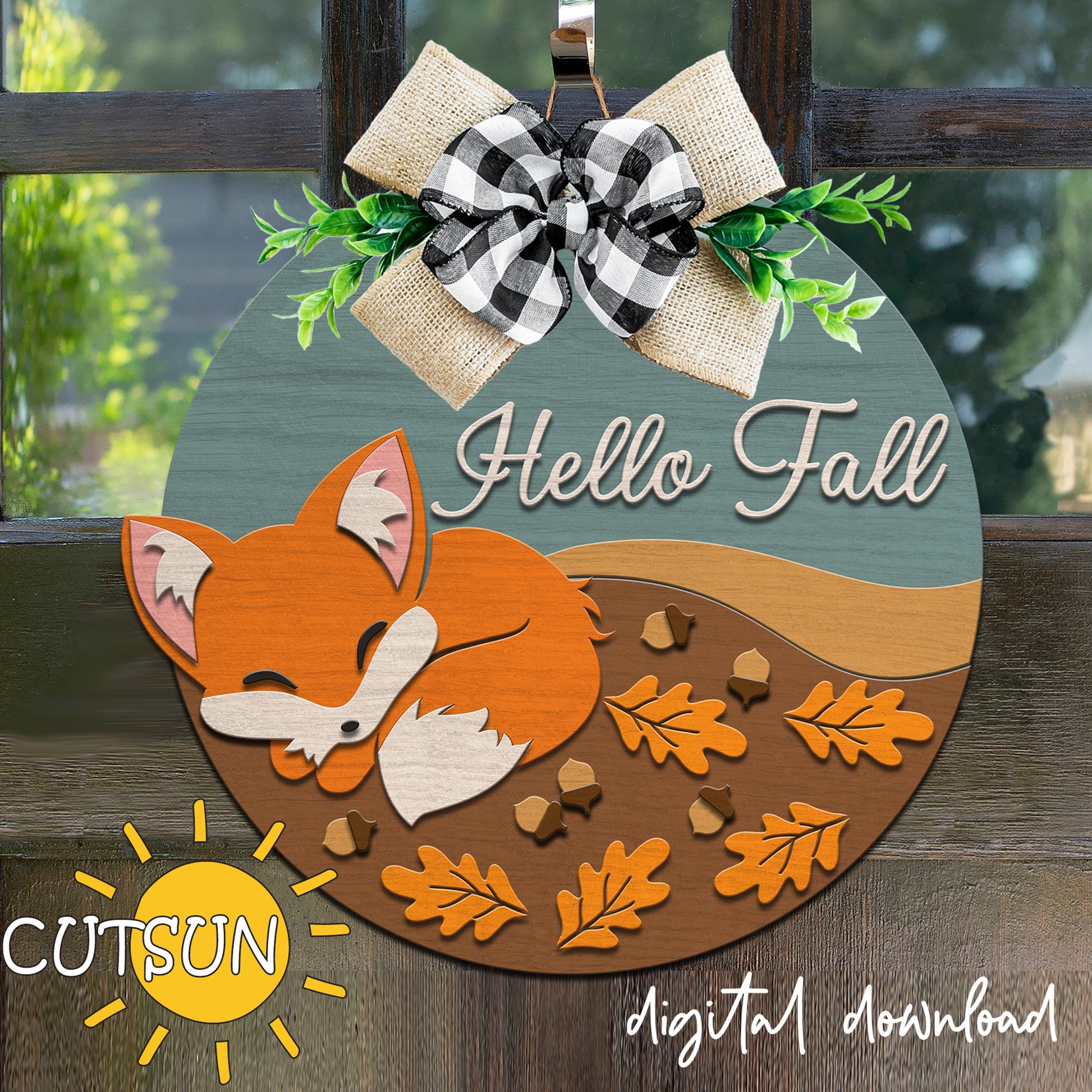 Sleeping Fox Welcome sign SVG | Hello Fall round sign SVG