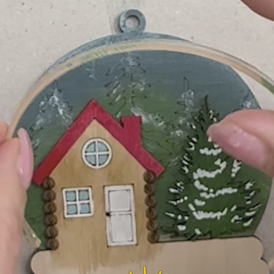 Snow Globe Ornament SVG | Layered Christmas Cabin Scene | Laser Cut File