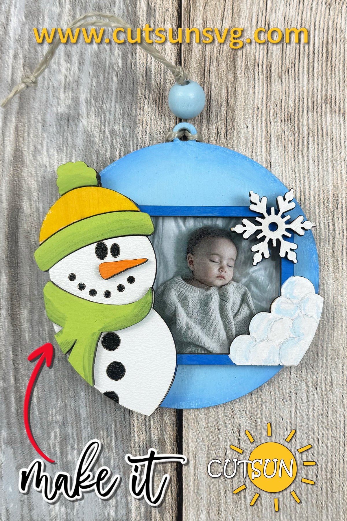Add a sprinkle of handmade love to your Christmas décor or product lineup with this delightful winter photo frame!