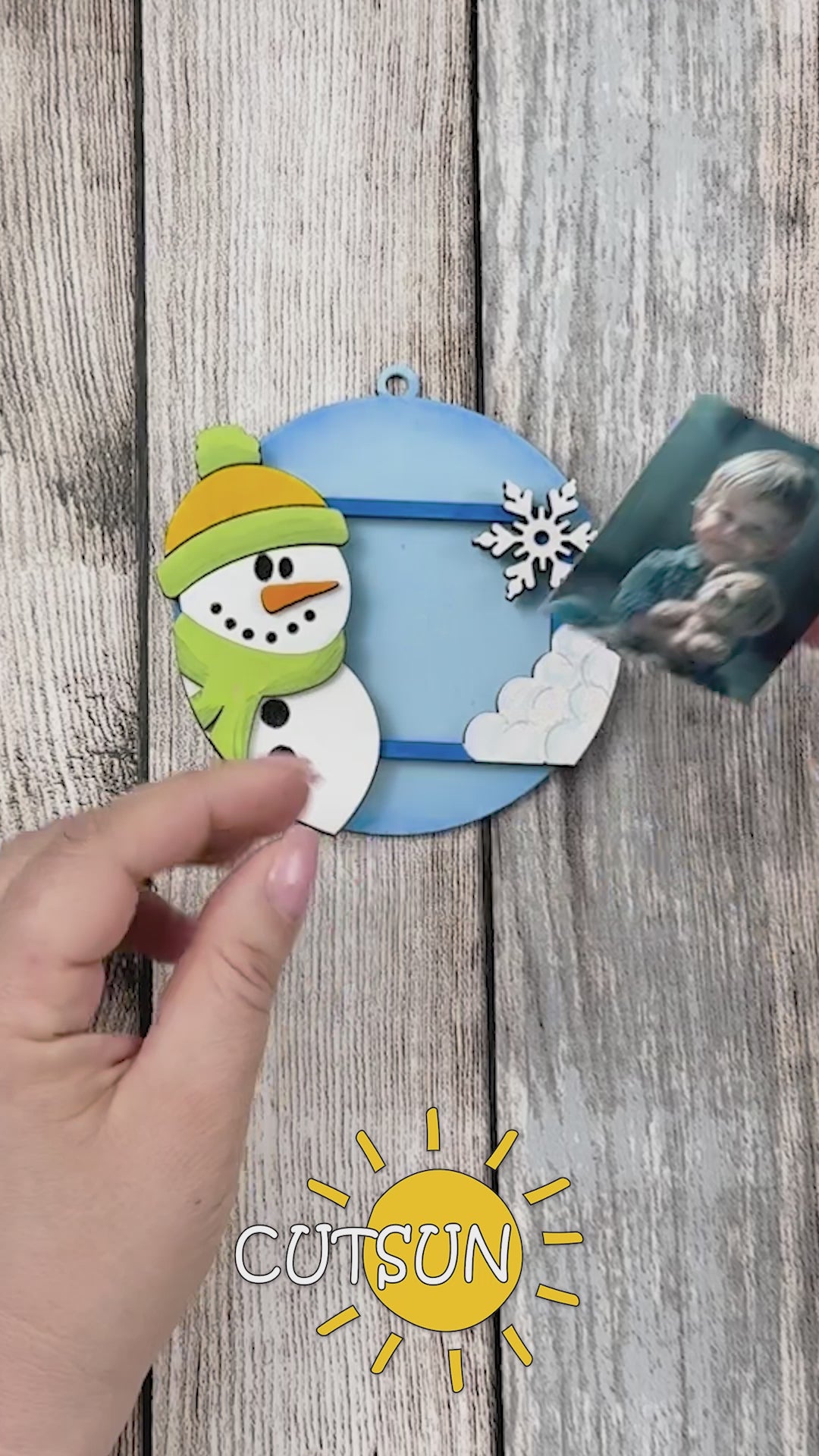 Snowman Photo Ornament SVG | Christmas Picture Frame Keepsake | Laser Cut File