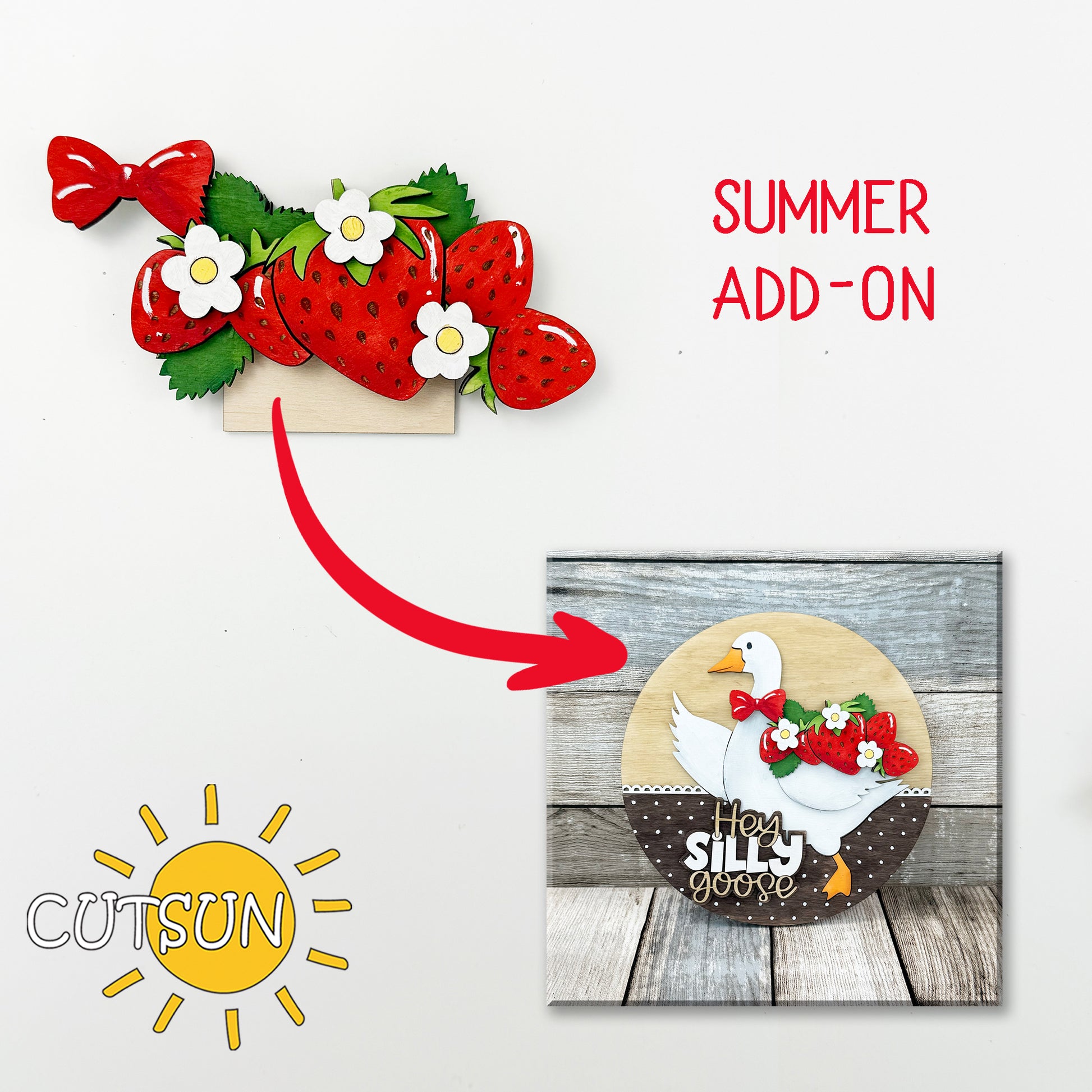 Strawberry Add-On SVG for Interchangeable Goose and Chicken Door Hangers or Shelf Sitters | Summer Fruit Sign Laser Cut File