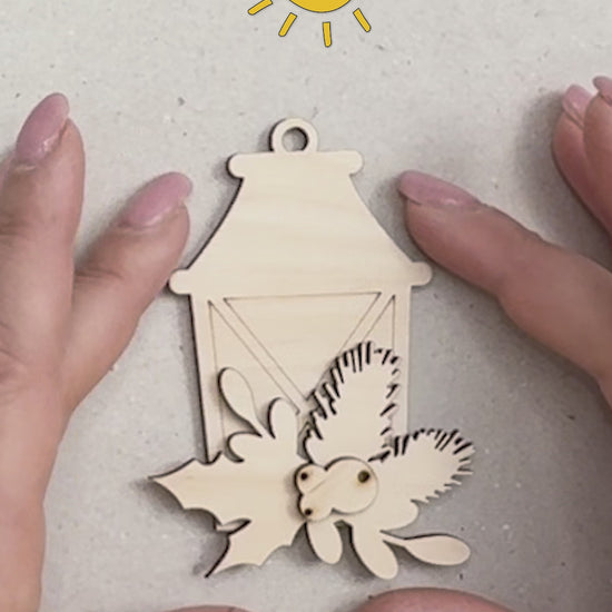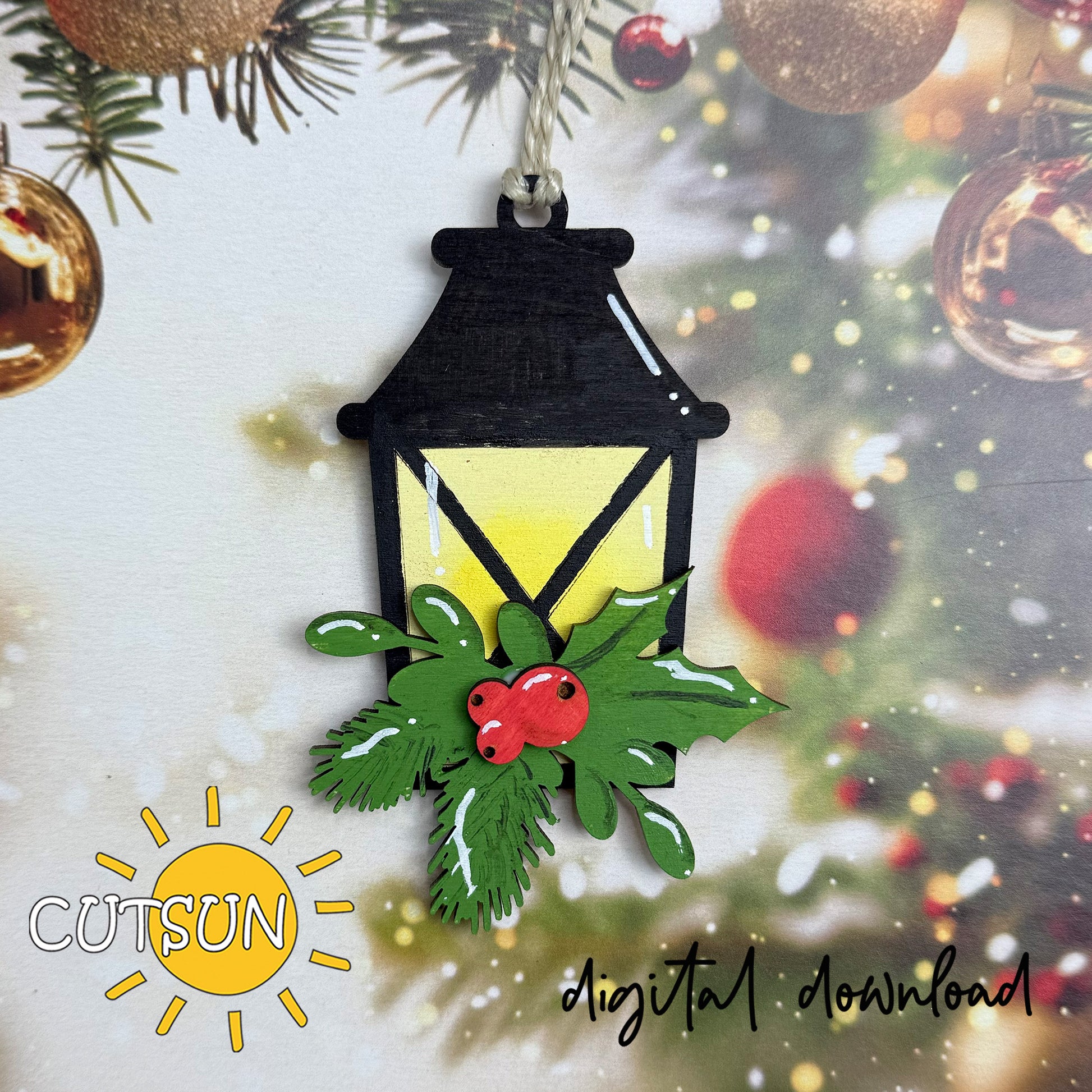 Lantern Christmas Ornament SVG | Pine Branches & Holly | Layered Laser Cut File