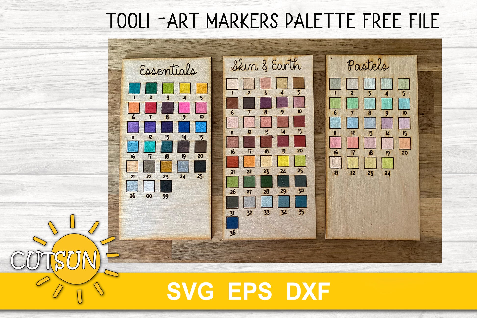 Useful SVG for making Tooli-Art markers sample palette, so you can see what the different colours would look like when applied to your preferred material. All the collections available in the set.