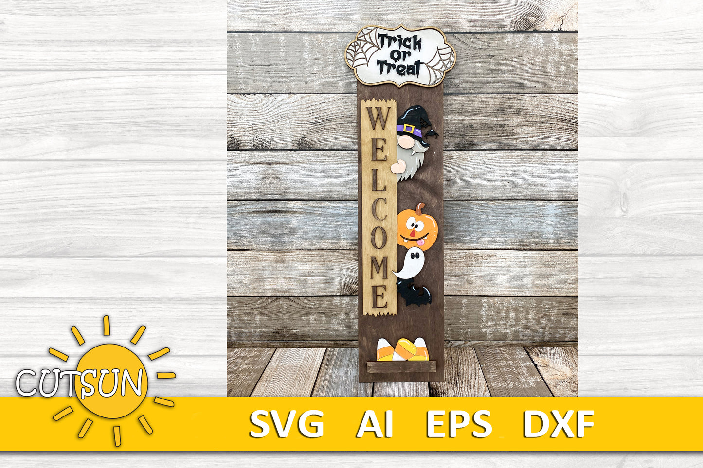 Halloween Porch Sign SVG – Vampire Gnome Add-On with Trick or Treat Plaque and Free Interchangeable Vertical Leaner for Laser Cutters