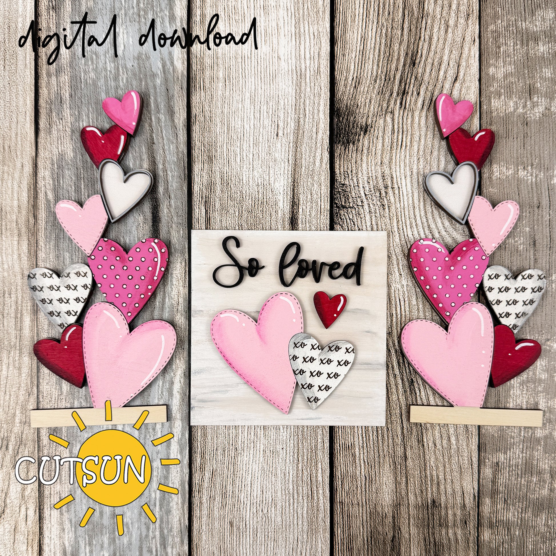 Valentine’s Day Add-On SVG for Interchangeable Farmhouse Window | So Loved Hearts Laser Cut File | Digital Download