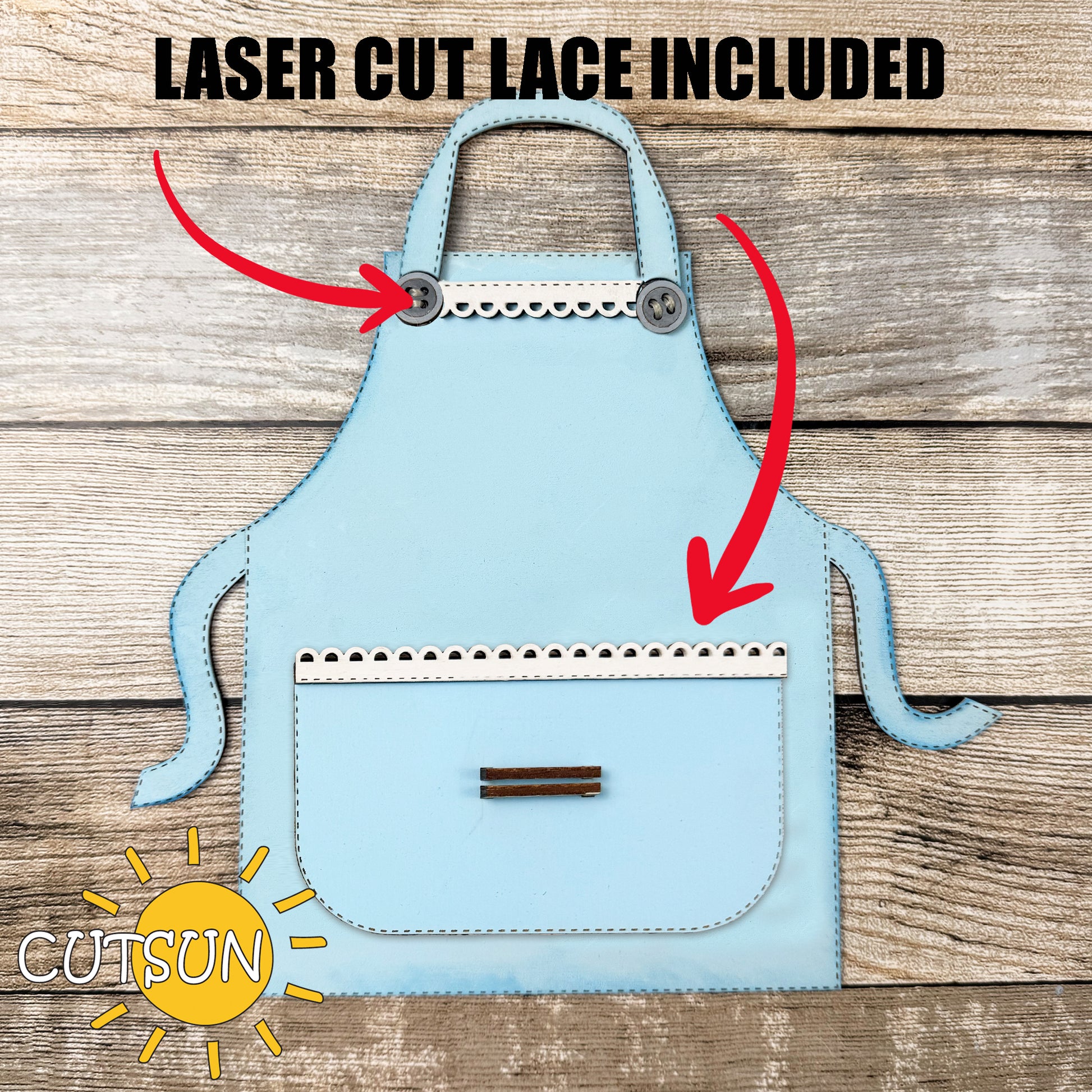 Ideal for crafters, laser cutting hobbyists, and small business owners looking for high-quality digital files to create unique kitchen decor pieces. Download today and start crafting your own warm and inviting apron shelf sitter