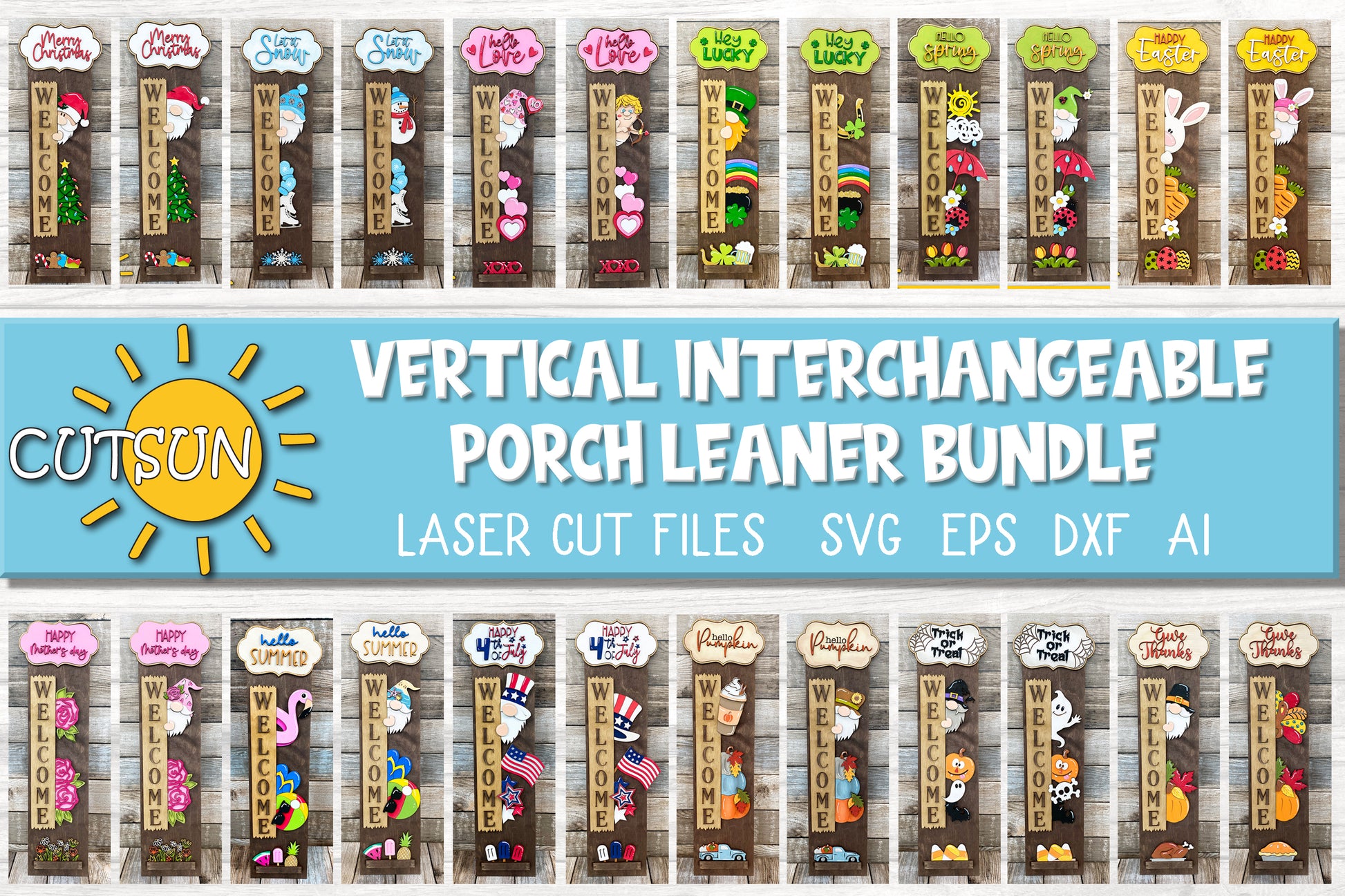 Vertical Interchangeable Porch Sign SVG Bundle for Laser Cutters – 24 Seasonal Designs