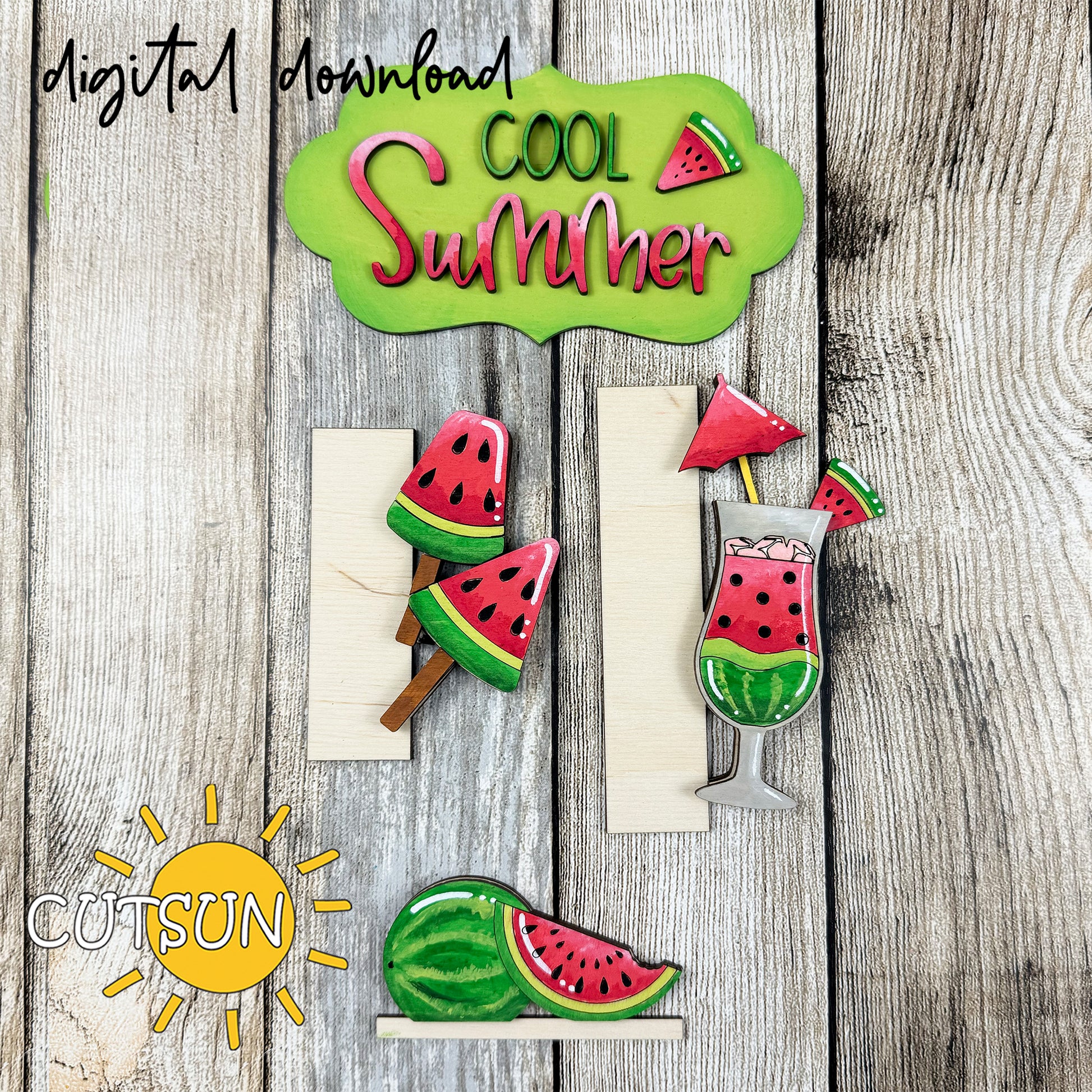 Watermelon Porch Sign SVG | Interchangeable Vertical Leaner | Cool Summer Popsicle and Fruit Decor Laser Cut File