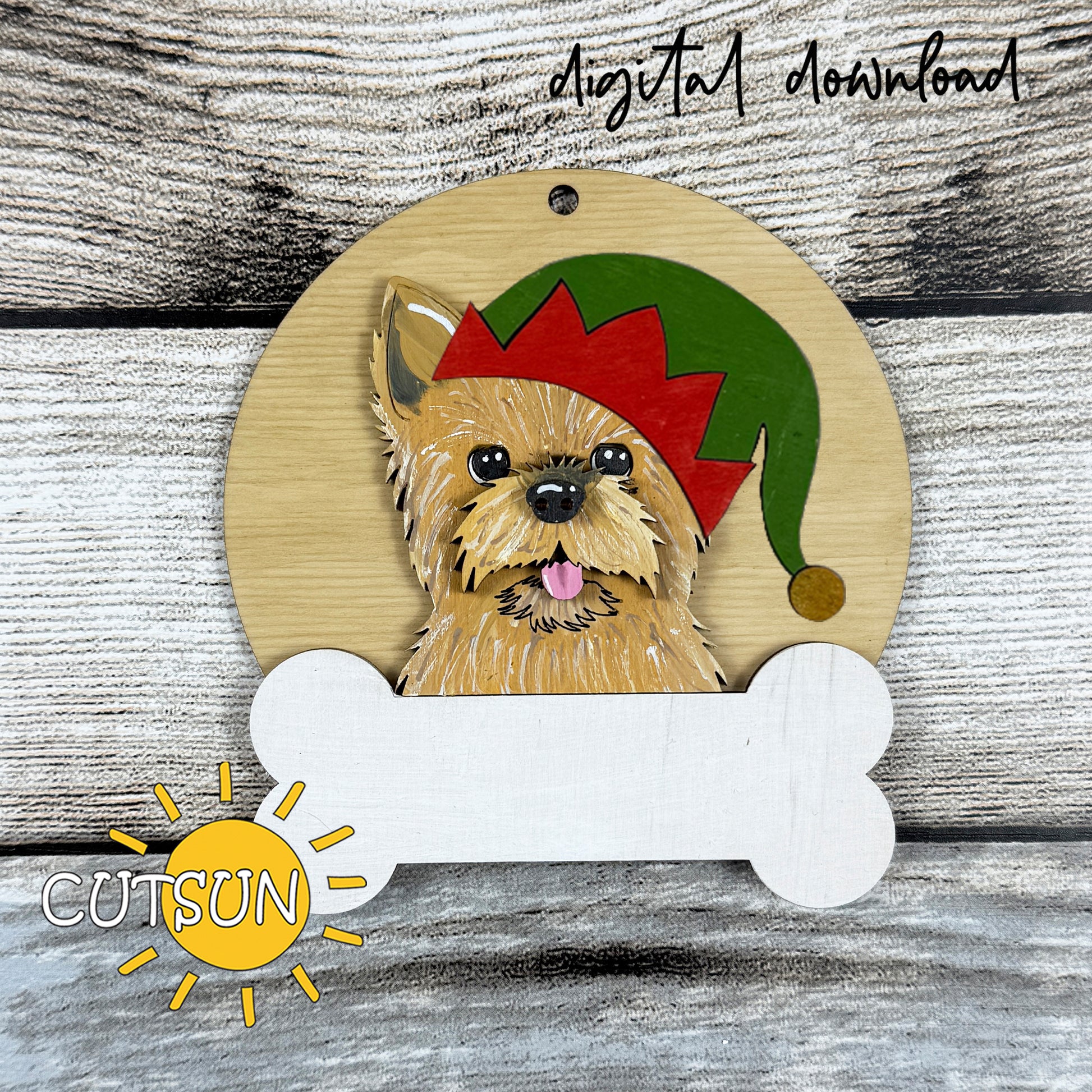 Layered Yorkie Dog Ornament SVG with Bone Name Tag and Festive Hats